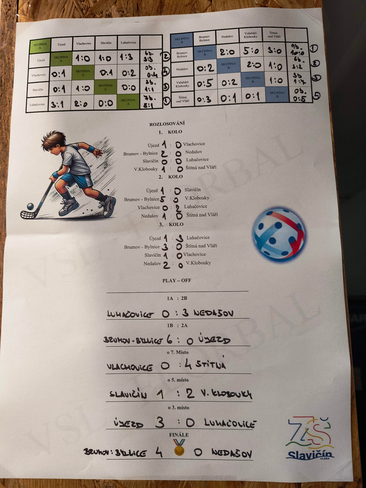 Velmi kvalitní skupinu jsme zakončili na 3. místě, když náš tým nestačil na favorizovaný tým z Brumova (1. místo) a velmi kvalitní tým z Nedašova, který ve finále skončil na 2. místě. Žáci obsadili solidní 5. místo.