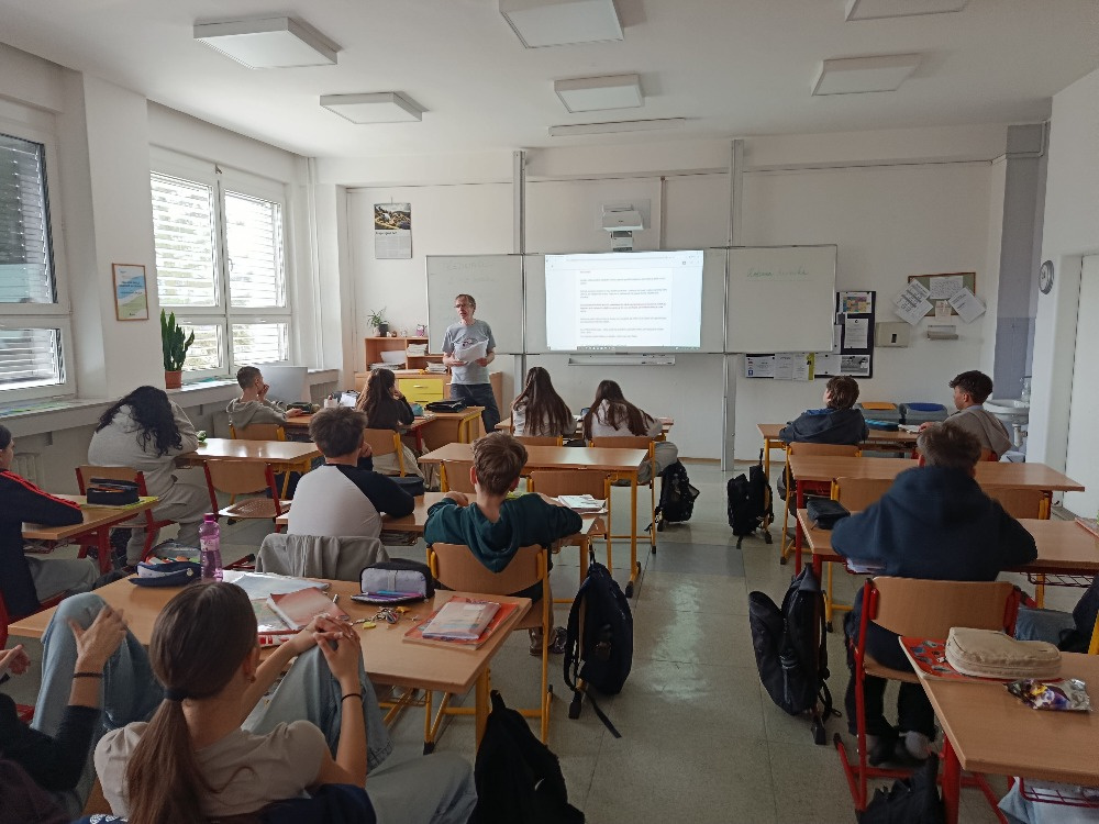 - Naše škola pokračuje ve spolupráci s Ing. Lubomírem Vejražkou, pracovníkem Ústavu pro studium totalitních režimů, který si pro nás ve středu 1. 4. 2026 připravil přednášku o dětech politických vězňů a jejich osudech.